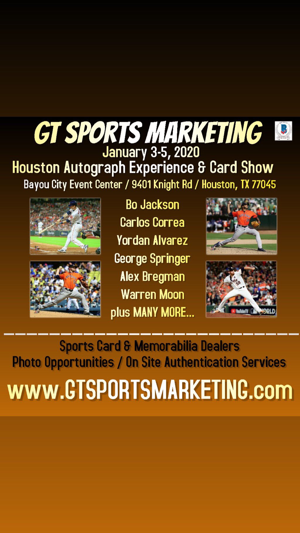 Kyle Tucker On Twitter Autograph Event In Texas This Weekend Come See Me Wmoon1 Abreg1 Bojackson Yordan Alvarez Josh James63 Other Greats At Gtsportsmkt Show At Bayou City Events Center For Tickets Info Https T Co Zqjr2csnro